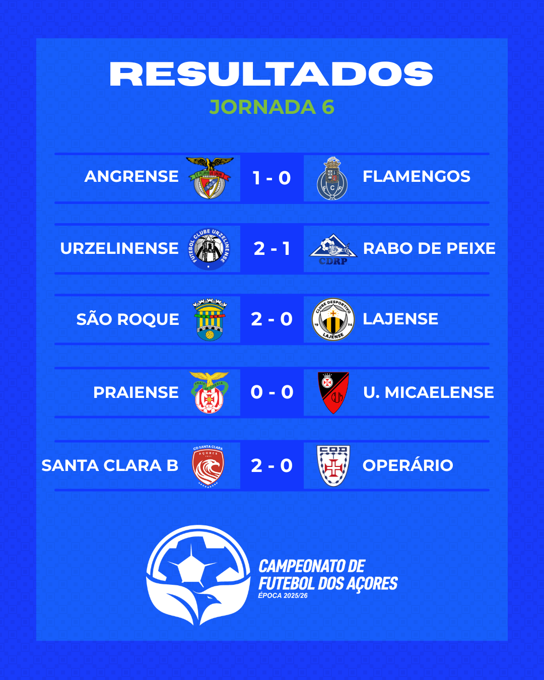 Este domingo jogou-se a sexta jornada do Campeonato de Futebol dos Açores (CFA).