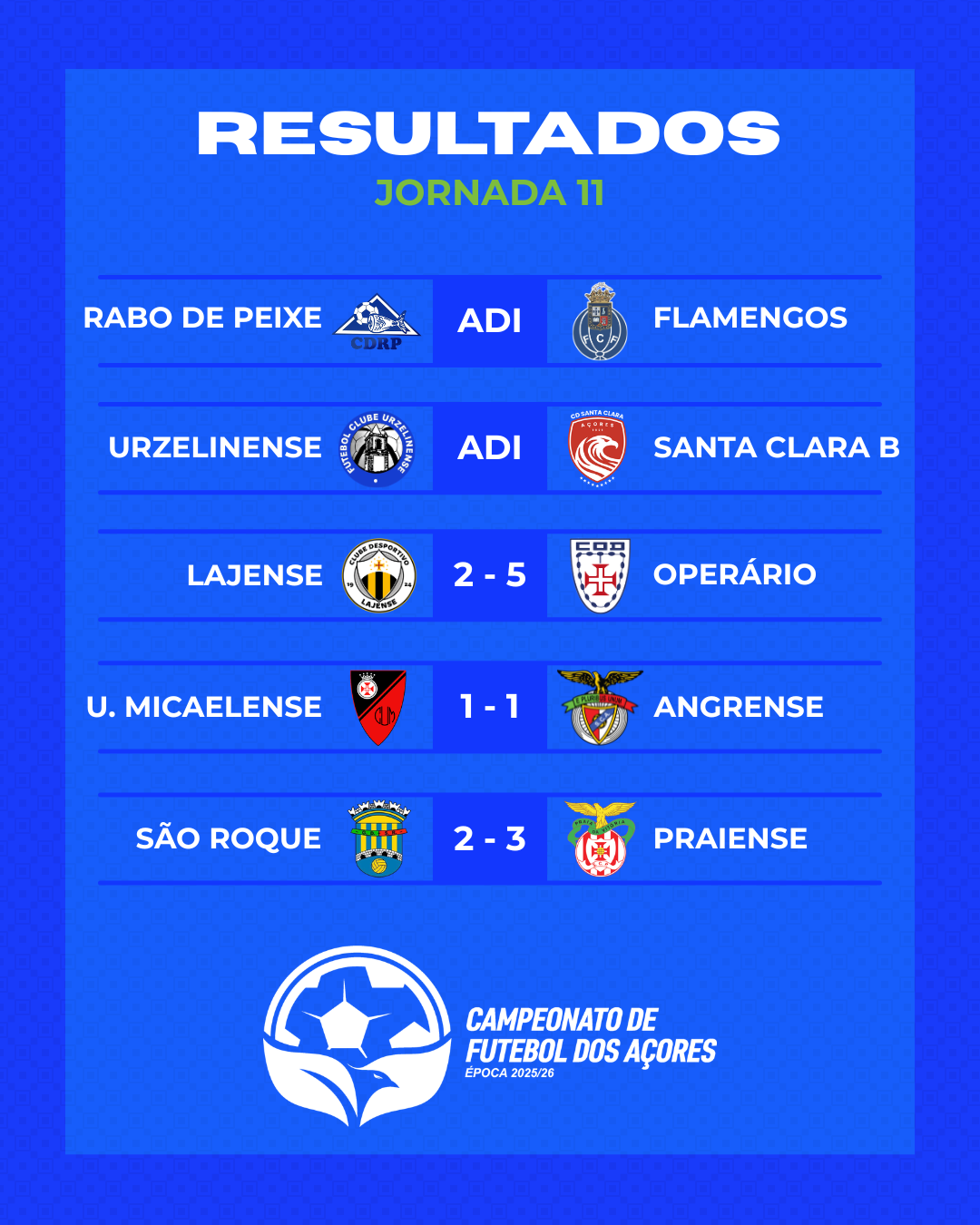 Este fim de semana jogou-se a décima primeira jornada do Campeonato de Futebol dos Açores (CFA).